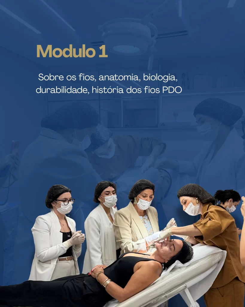Anatomia facial aplicada, biologia dos fios PDO e PLLA/CL, história e evolução, tipos (espiculados, canulados, biagulhados), durabilidade e mecanismo de ação com bioestímulo.